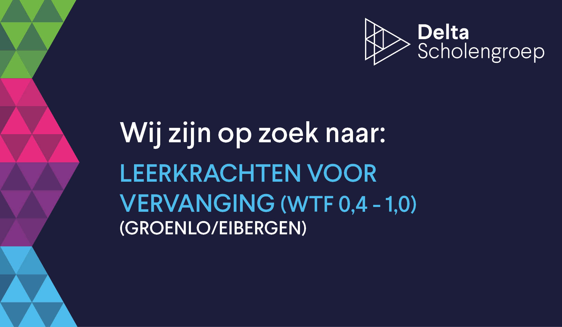 Delta Achterhoek bestaat uit vijf scholen in Groenlo en Eibergen. Op vier van onze scholen hebben wij de komende periode verschillende vervangingsvragen en daarom zijn wij op zoek naar: